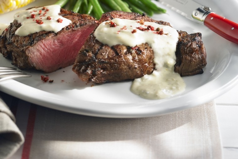 Bifteck au poivre rose avec sauce crémeuse au Cambozola